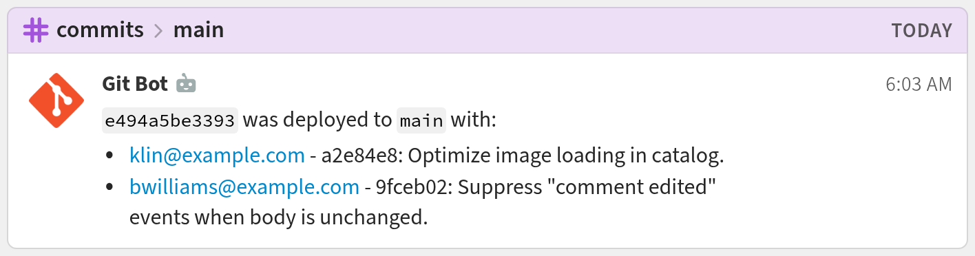Note that Zulip also offers integrations for GitHub, GitLab and various other version control hosting services.